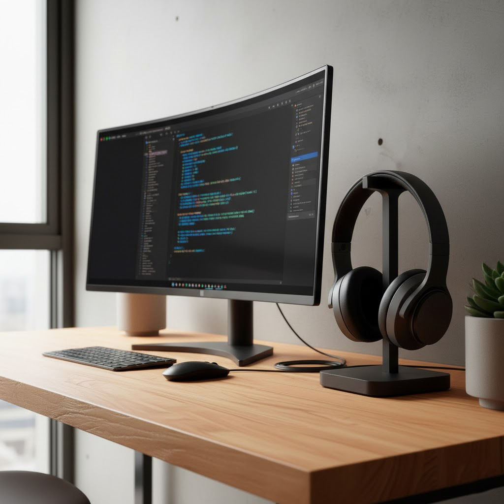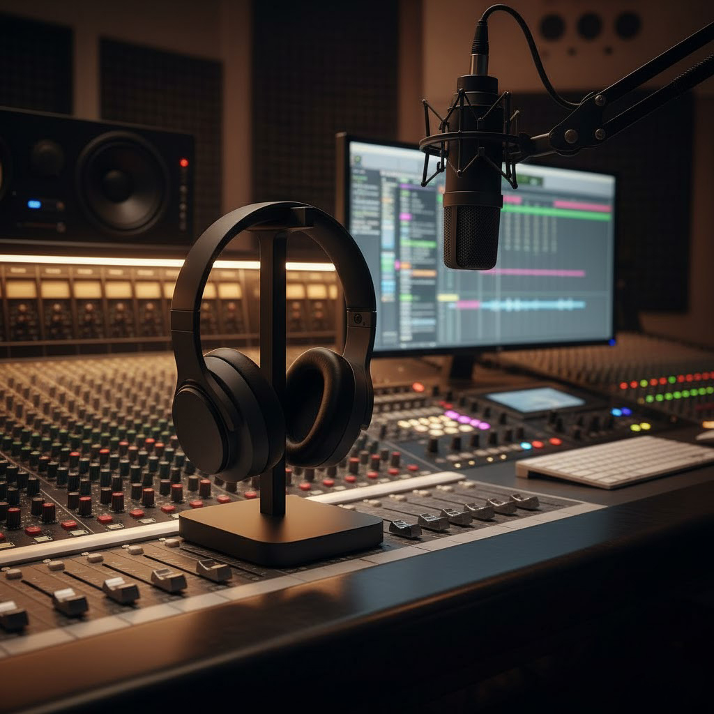- Oszczędność Miejsca na Blacie: Pionowa konstrukcja maksymalizuje przestrzeń, utrzymując słuchawki w gotowości i poza obszarem roboczym.