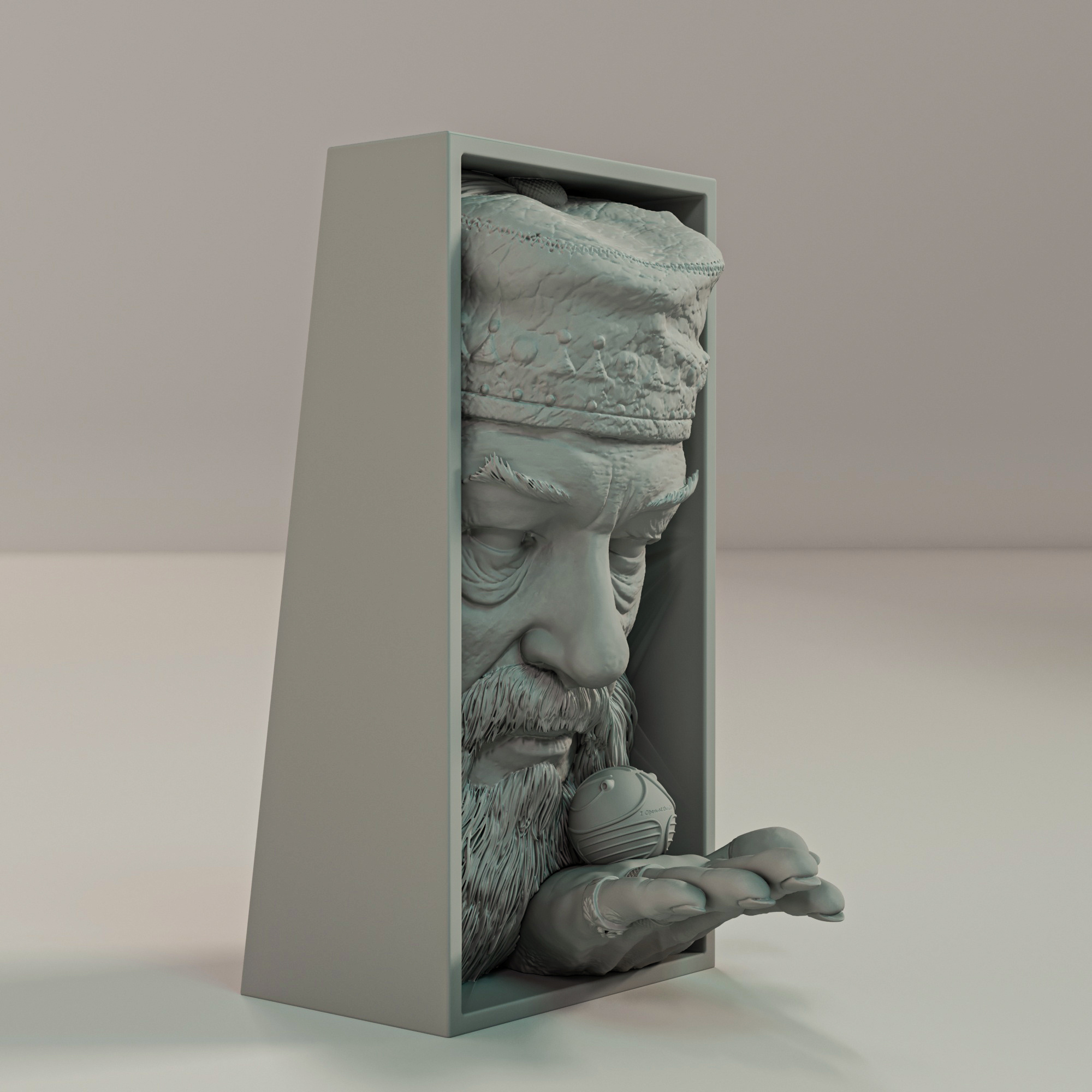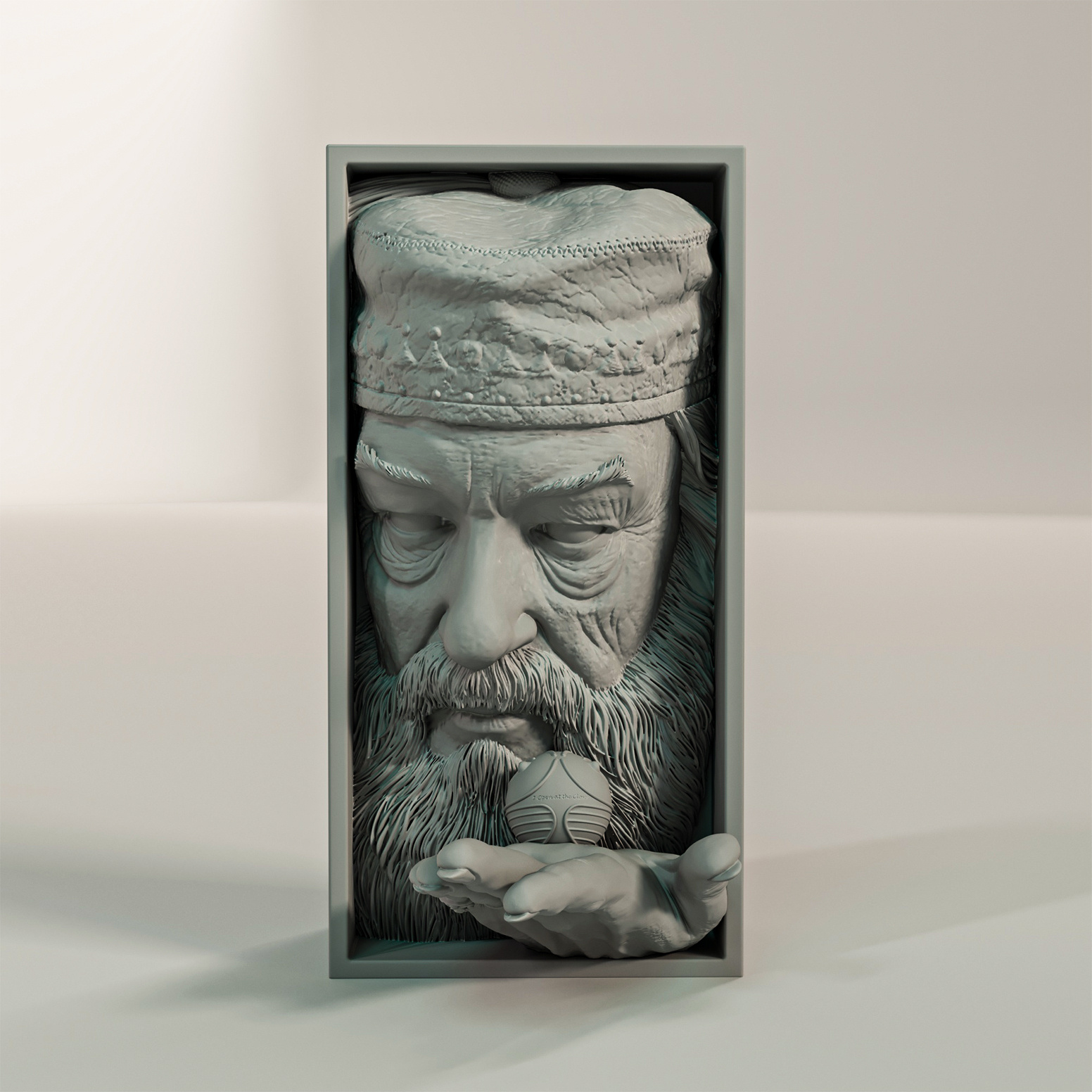W tej niezwykłej podpórce, oblicze Dumbledore’a zostało ujęte z monumentalną wrażliwością: jego długa, dostojna broda spływa kaskadą szczegółów, a zmarszczki na twarzy są kroniką stuleci pełnych magii i trudnych wyborów. Spod czapki spogląda w dół z przenikliwą zadumą, a jego dłoń trzyma Znicz Złoty (Golden Snitch), który niegdyś skrywał najważniejszą tajemnicę. To nie jest pośpiech walki, lecz wieczny moment kontemplacji.