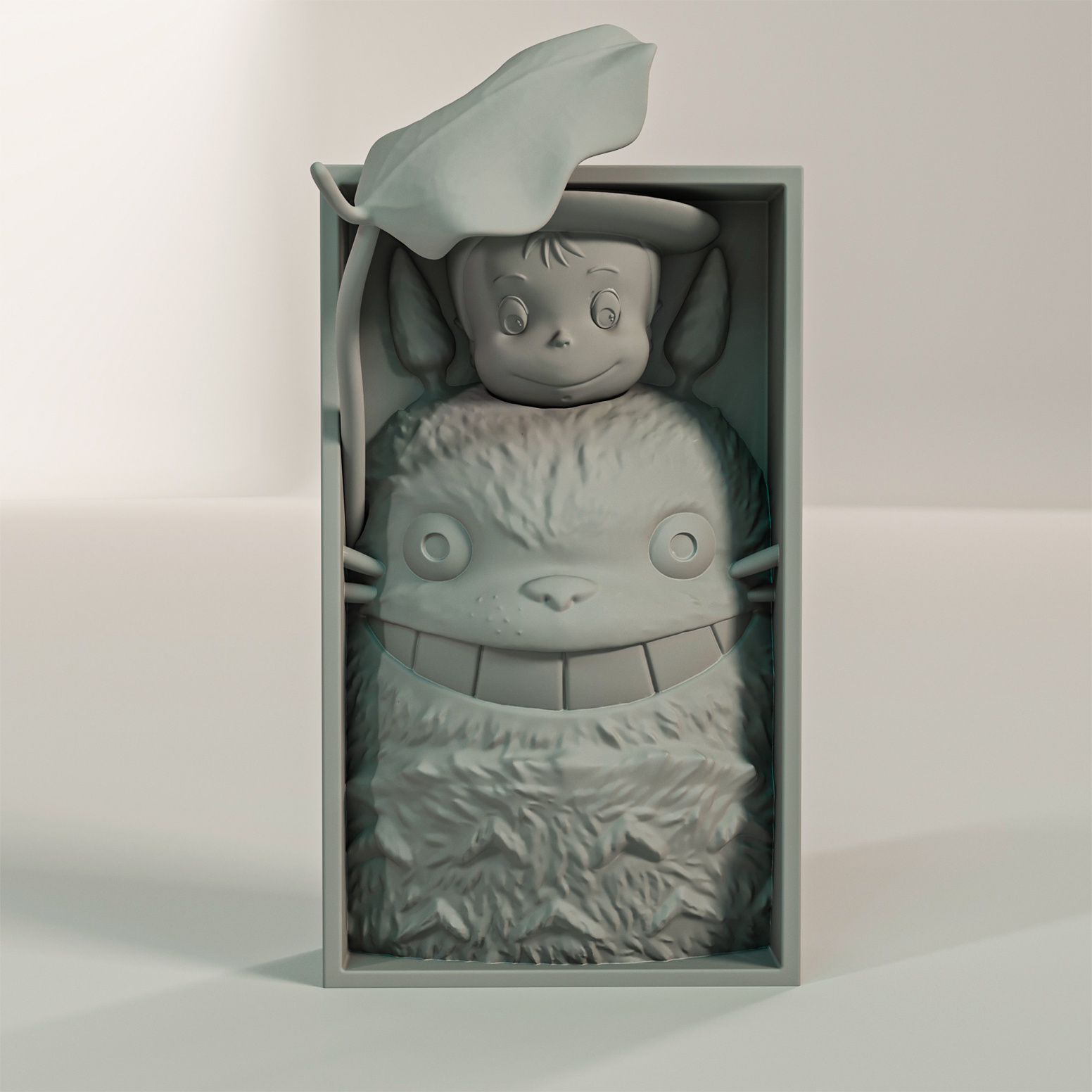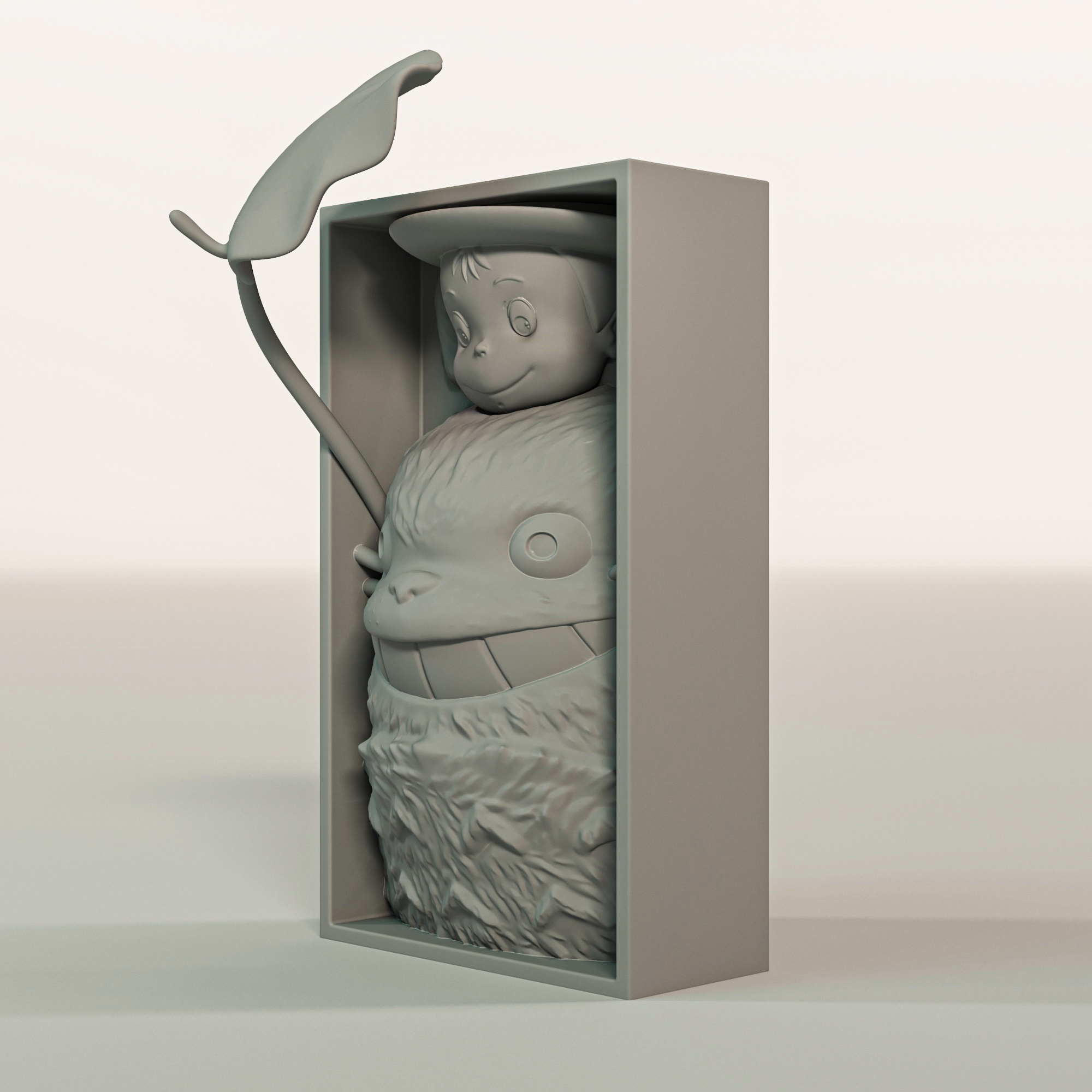 W tej niezwykłej podpórce uchwycono czyste, futrzane szczęście: jego ogromne, okrągłe oczy spoglądają z mieszanką zdumienia i dobroci, a szeroki, radosny uśmiech obiecuje deszcz żołędzi i magiczne loty. Na ramionach Wielkiego Ducha spoczywa Mniejszy Totoro, a całość wieńczy ogromny liść chroniący przed letnią ulewą – to symbol niewinności i symbiozy z naturą.